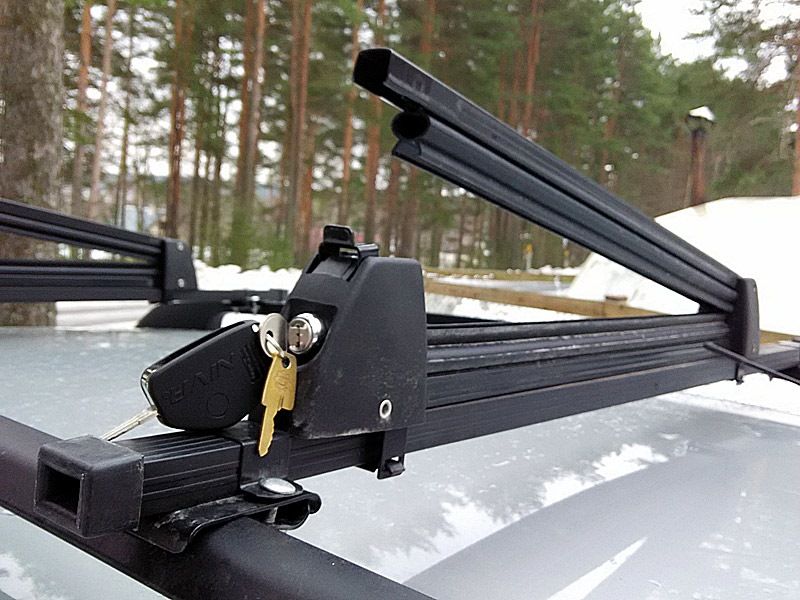 Лыжные крепления позволят перевезти 3 пары лыж или 2 сноуборда на крыше автомобиля.