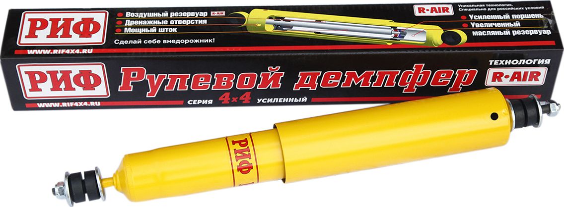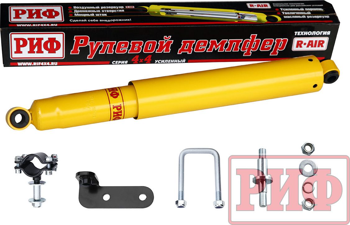 Демпфер РИФ рулевой с кронштейнами для УАЗ Patriot 2005-2026, лифт 50 мм. Артикул SD09P