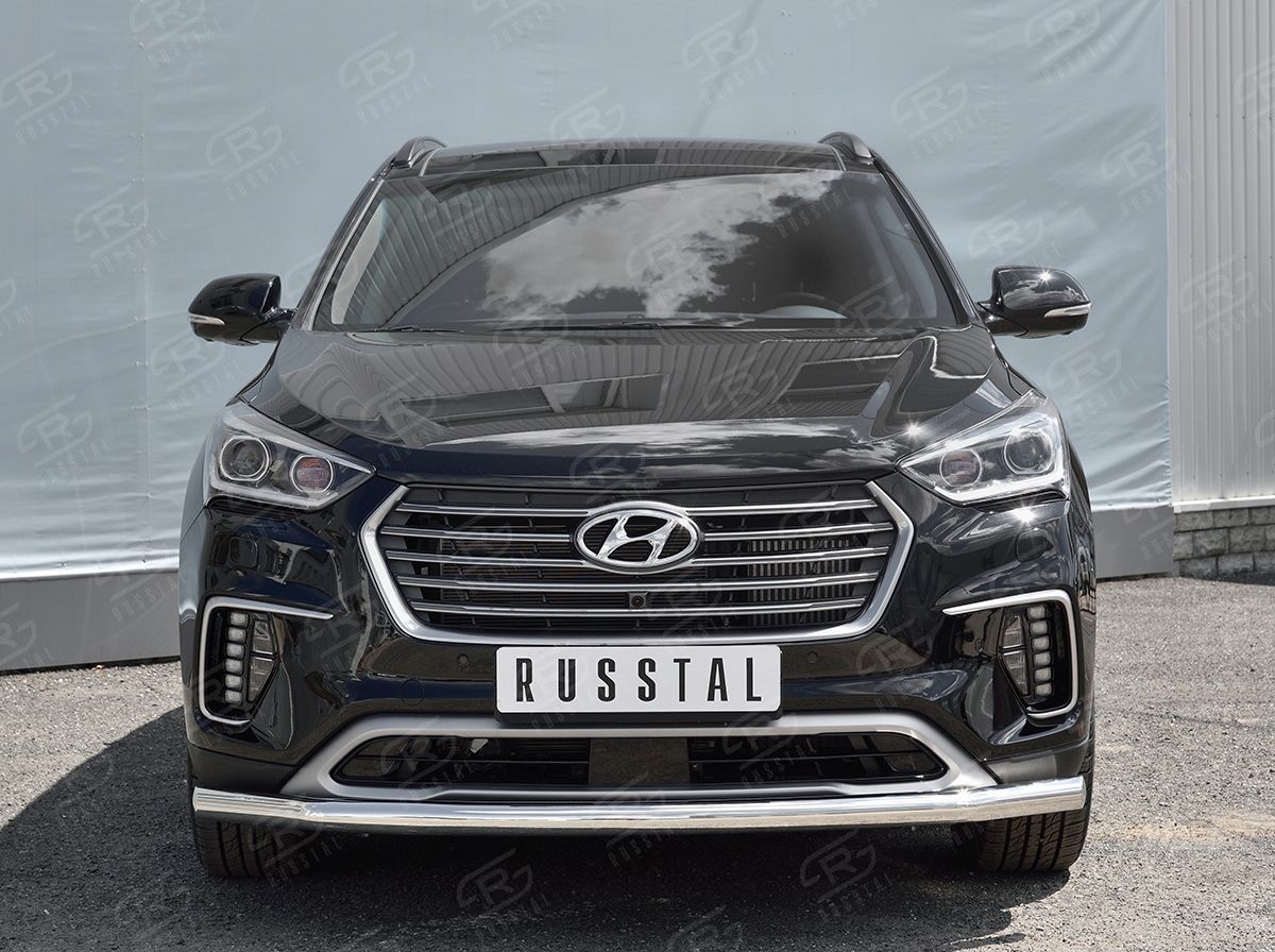 Защита RusStal переднего бампера d63 (секции) d42 (дуга) для Hyundai Grand Santa Fe 2014-2016. Артикул HSFZ-002007